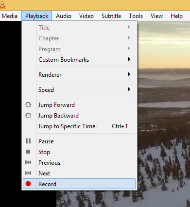 In the Playback menu, click on the Record