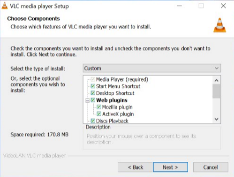 Click Browse to choose a destination installation folder of your choice. After you’ve identified the desired folder, click Install. Doing so installs VLC media player on your computer.